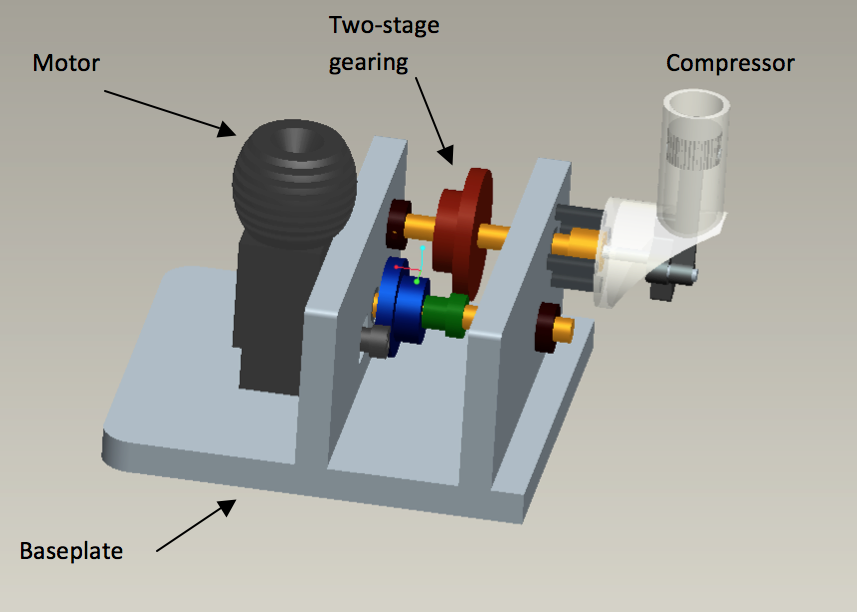 Designed, analyzed, and prototyped a mechanical assembly that allowed a portable electric air compressor to be powered instead by a small nitro-fuel-powered RC car engine.